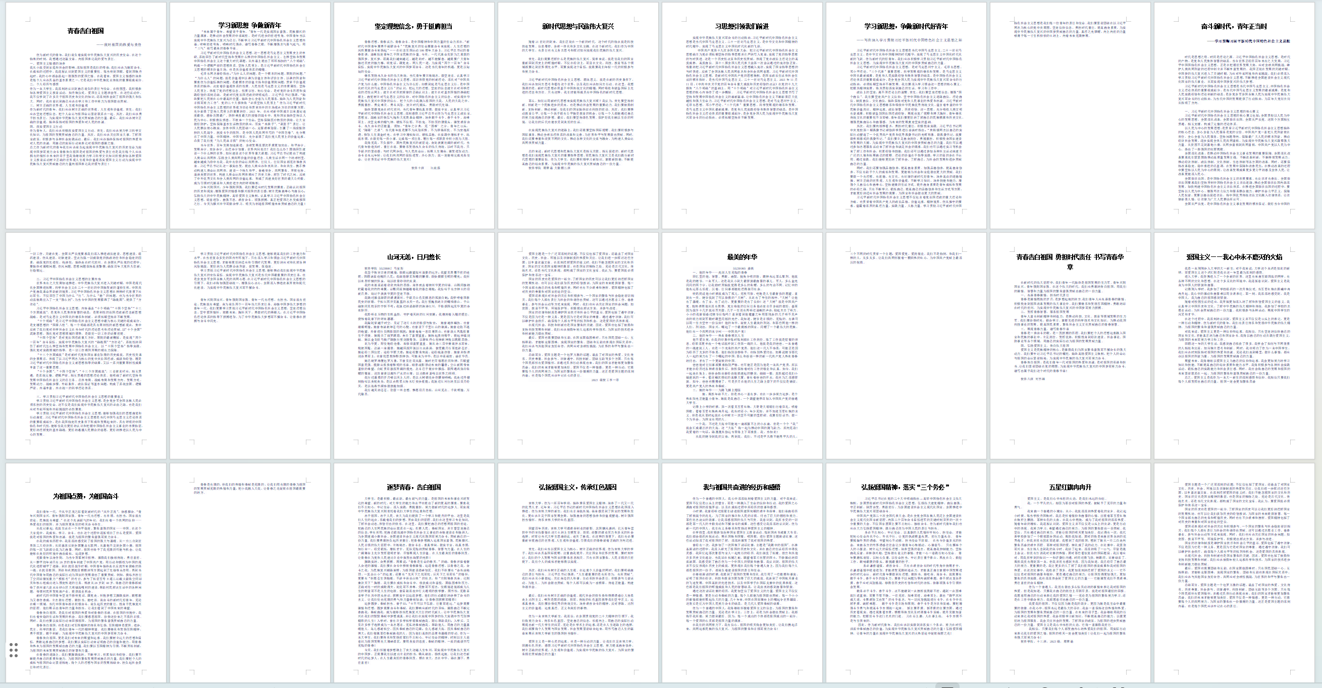 本次活动面向我院广大学生进行作品征集,共收到24篇作品,同学们积极参与,回顾了新中国成立以来党和国家走过的辉煌历程和取得的伟大成就,并结合自身经历,用朴素真挚的文字抒发了自己对于建设祖国的雄心壮志和美好愿景,展现了青年学生的爱国情怀和远大志向。经过评审,活动最终评选出一等奖1名,二等奖2名,三等奖3名以及优秀奖若干名。同学们通过此次活动不仅提高了自身的写作技能,而且更加坚定了青春报国的理想信念,立志将小我融入大我,把人生理想融入国家和民族的事业中,勇于担负起时代赋予的重担。