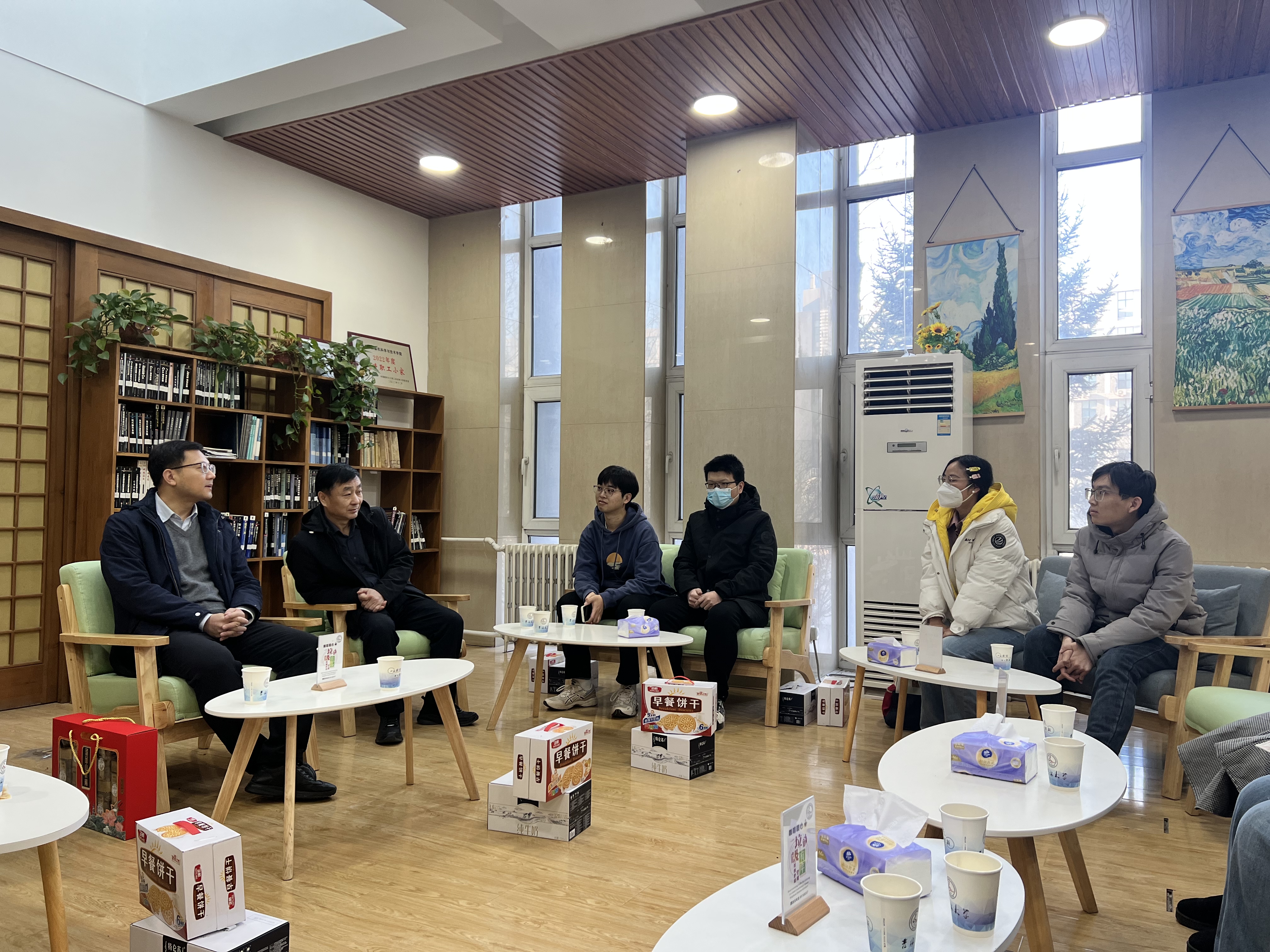 甲辰龙年春节即将到来之际,为进一步做好寒假留校研究生管理工作,了解和关心留校学生的学习、生活情况,让留校学生度过一个平安喜庆的春节,2月8日,学院院长杨博、学院党委副书记杜天宝、高战国和辅导员张译心看望寒假留校学生,在学院举行座谈交流会,为同学们送上新春祝福与关怀。