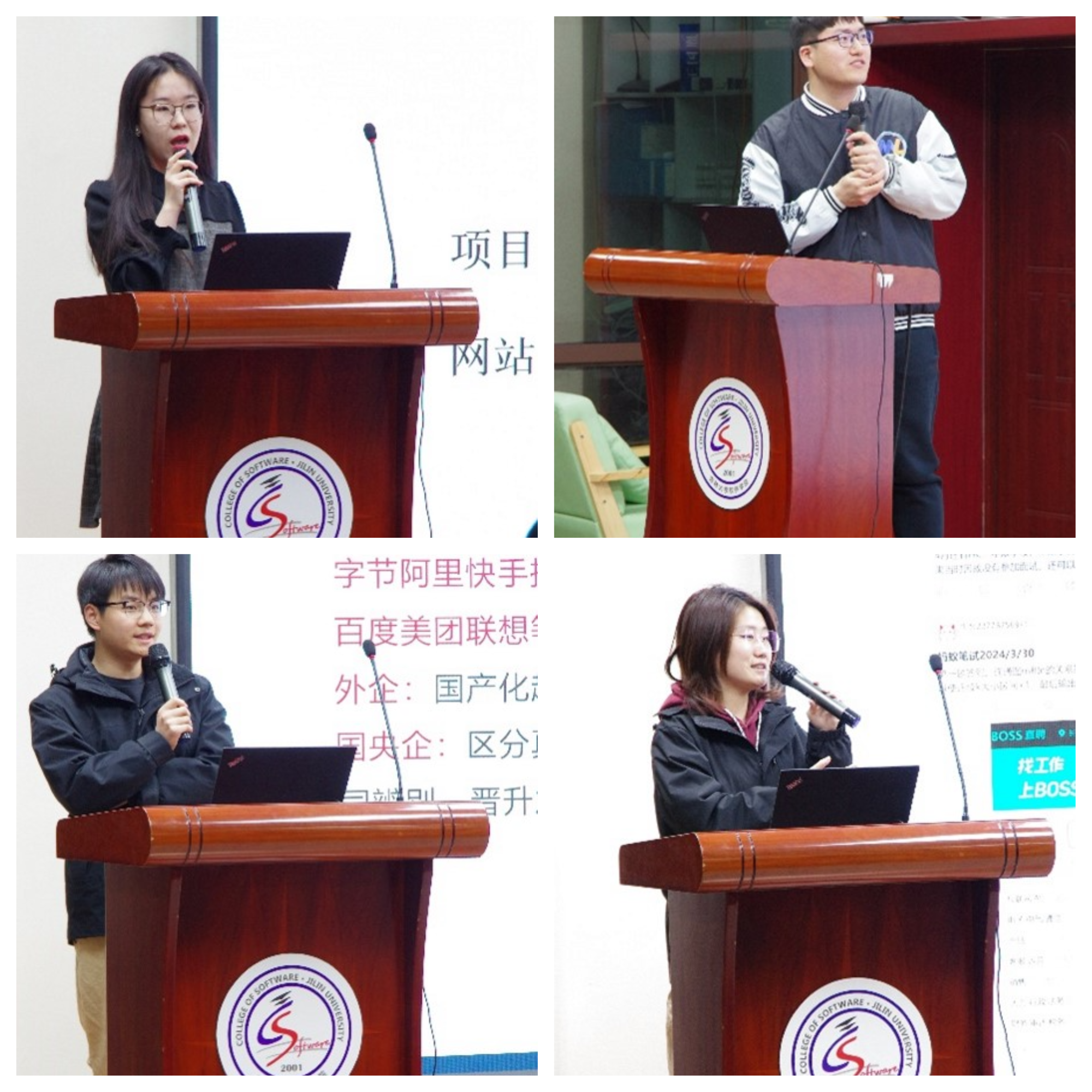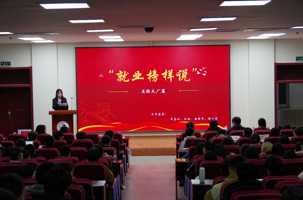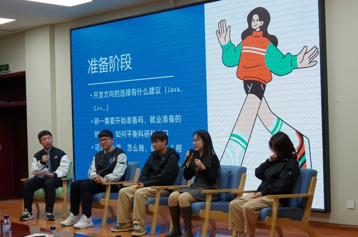 研会综合事务部尹馨慧同学主持,第一位分享嘉宾是现入职美团的杜铭同学,主要分享内容为准备互联网大厂的就业整体规划、专业技术学习等内容;入职华为单家旺同学就笔试算法与项目经历准备、综合面试技巧等内容进行了分享;盛建华同学主要分享内容为开发测试的就业经验、实习体验与未来发展等内容;最后一位带来分享的是入职蔚来的徐小惠同学,主要分享了算法岗岗位介绍、日常工作以及如何把握算法岗机会等内容。