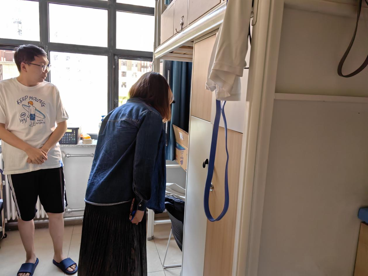 辅导员张译心带领研究生会成员深入学生宿舍,开展学生公寓消防安全检查。