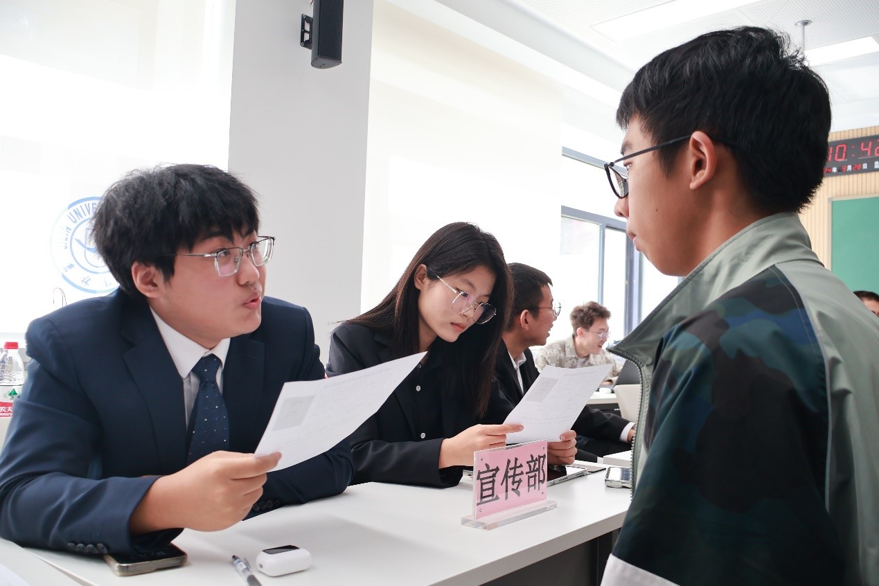 9月28日,我院在敬信教学楼C101和C105教室正式开展了团学的面试工作。团学各部门部长及副部长全员到场,准备迎接新生力量的加入。参加面试的新生依次进行自我介绍并参与现场问答,展现出各自的特长与能力,表达了他们对学生工作的热情与期待。经过紧张而有序的面试,纳新工作圆满完成。无论是否加入理想的部门,相信每一位同学都能在团学组织中找到属于自己的舞台,发光发热,开启充实而美好的大学生活。