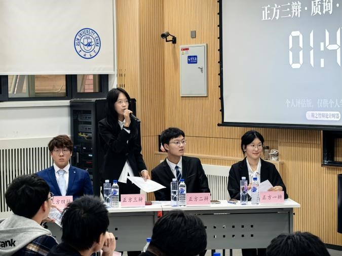 在决赛现场,辩手们以有力的论据和精彩的言辞进行了激烈交锋,思想的碰撞为观众带来了一场智慧的盛宴。评委们对辩手们的表现给予高度评价,称赞他们展现了新时代大学生的风采与思辨力量。