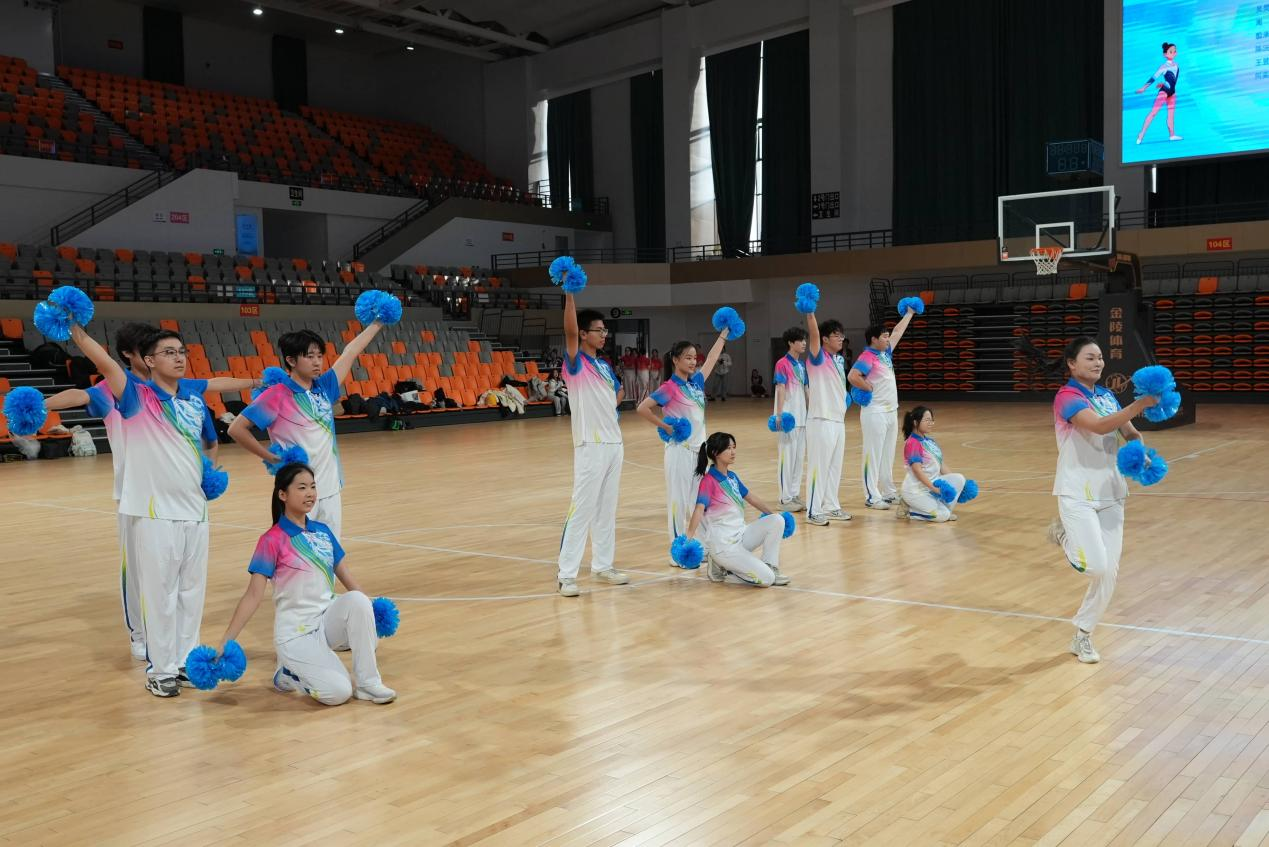 为备战此次赛事,学院广泛动员同学参与,经筛选与训练,最终确定13名优秀学子组建代表队出征赛场。比赛现场,队员们身着统一健身服,伴随动感音乐踏入赛场。表演开始,队员们迅速分散,随后以流畅的队形变换展开表演,时而分散成错落有致的三角阵,时而聚拢成紧密规整的方阵,3次精心编排的集体配合造型将团队默契展现得淋漓尽致,5次灵动流畅的队形切换更是引得现场掌声不断。赛场上,队员们动作整齐有力,每一次伸展、每一次跳跃都精准踩合节拍,安全难度动作的融入为表演增添诸多亮点,收获观众阵阵欢呼。